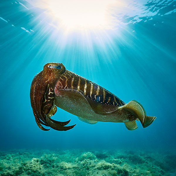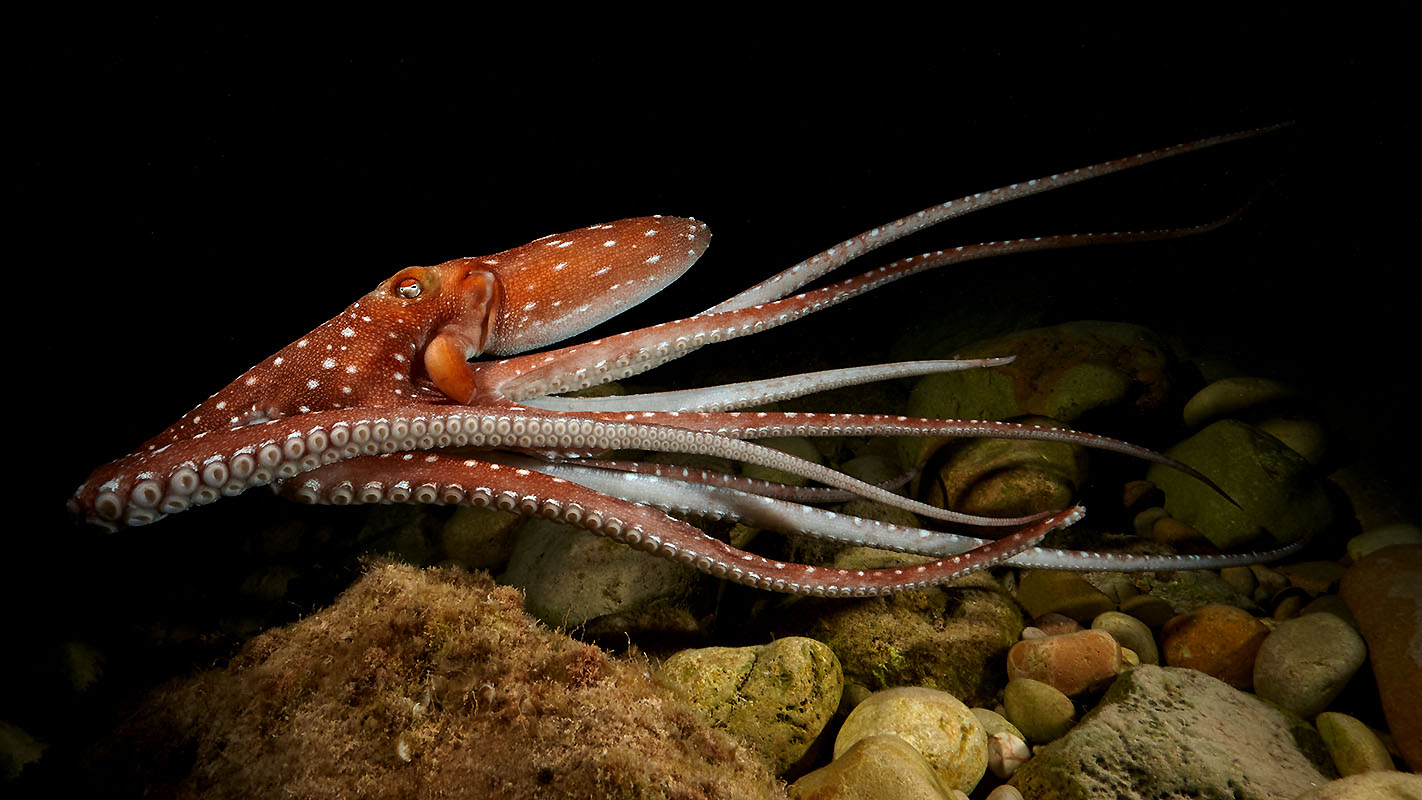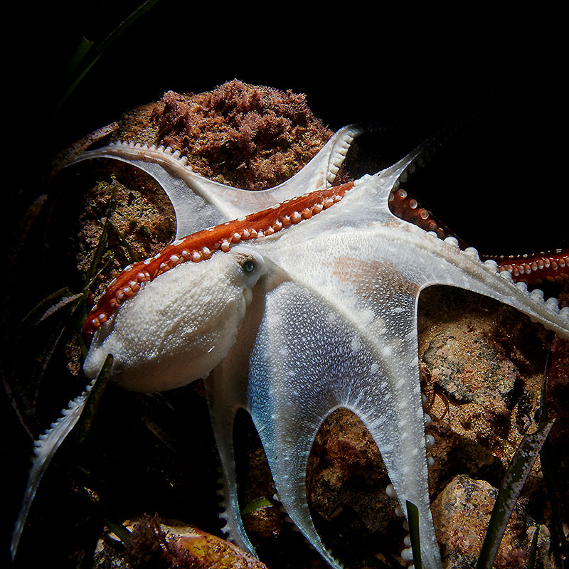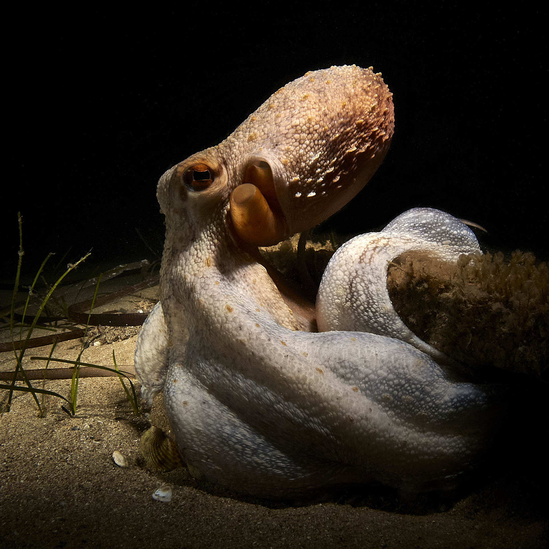 Instantly recognisable by its bulbous head, sinuous arms, and large, expressive eyes, the common octopus stands out for its appearance and remarkable intelligence. Boasting the most significant brain-to-body ratio among all invertebrates, these creatures demonstrate an extraordinary capacity for learning and problem-solving.