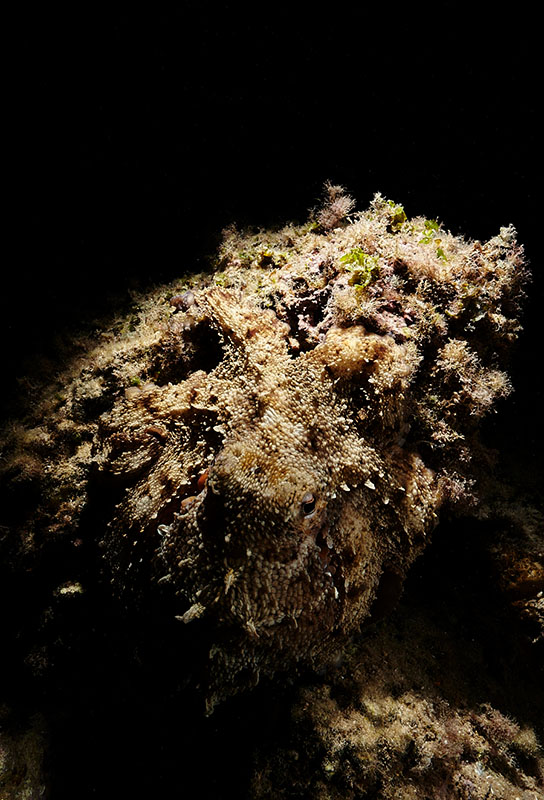 This octopus feeds on tiny organisms, although I have seen it attacking the Common octopus several times.
