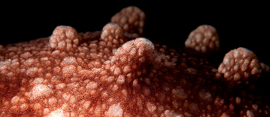They are easily identifiable by their reddish colouring, the white papillae that line their bodies, and their long arms.